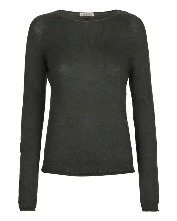 Afrodite-trøjen i Moss Green bringer en naturlig og jordnær elegance til din garderobe. Den dæmpede grønne nuance har et roligt udtryk, der passer til både lyse og mørke farver og giver et organisk touch til dit outfit.
