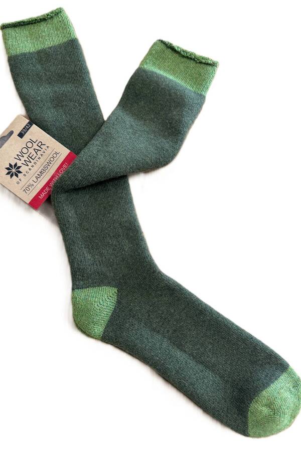 De er produceret i eksklusiv italiensk lammeuld i en smuk pine-green farve, som giver sokkerne et klassisk og naturligt udtryk.