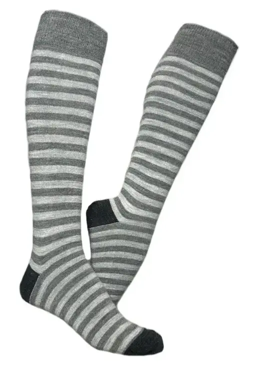 Luksus Alpaka Knæstrømper/ Striber/Grå