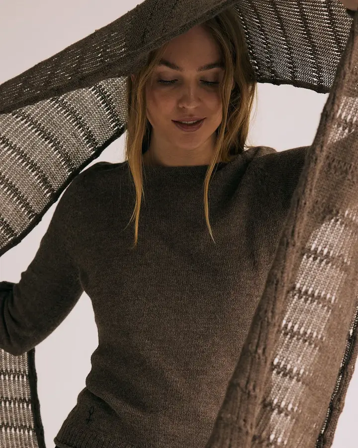 Fremstillet i 100% baby alpaca på gamle håndstrikkemaskiner i Peru, hvor erfarne håndværkere stadig mestrer de tekniske detaljer, som ikke længere anvendes i industrien.