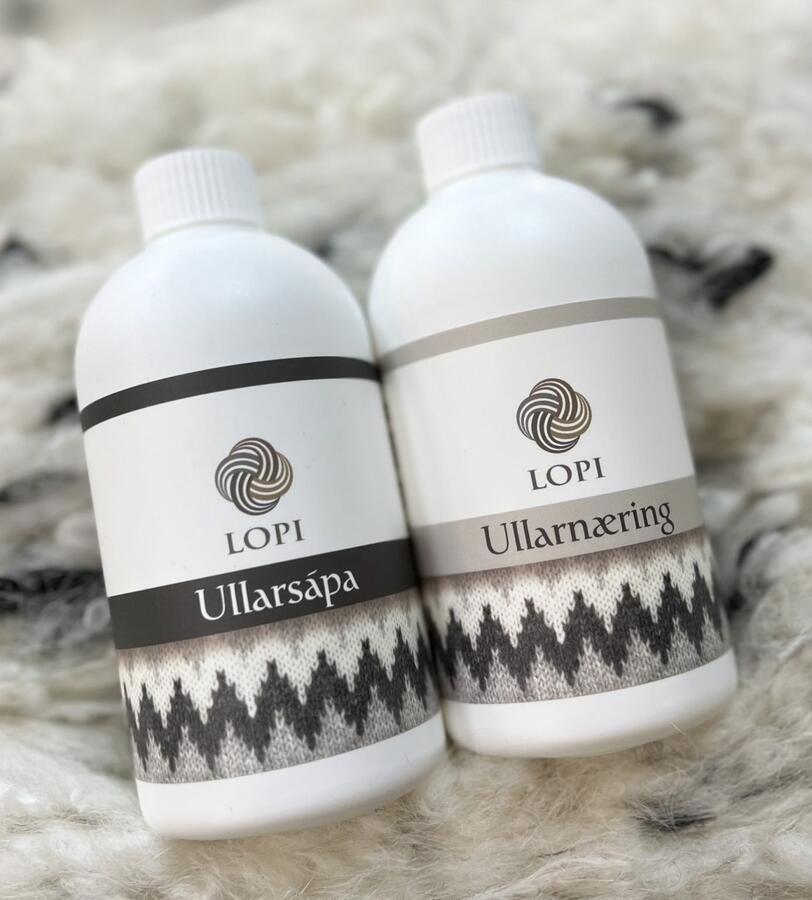 Islandske Ístex har udviklet en uldsæbe og uldbalsam, der passer perfekt til Lopi-garn og andre uldprodukter. Serien består af Lopi Ullarsápa (uldsæbe) og Lopi Ullarnæring (uldbalsam) – to produkter, der bevarer uldens naturlige fedtstoffer, blødhed og struktur.