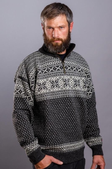 Elegant hvid uldsweater med koksgrå stjerner i 100 % ren uld. Produceret af Norske Norwool & Gjestal fra Oltedalen, som er en af de bedste og førende uldspinderier i Norge.