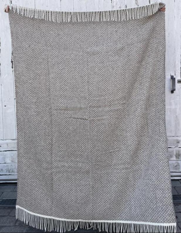 Herringbone ulplaid i grå nuancer - 100% norsk uld