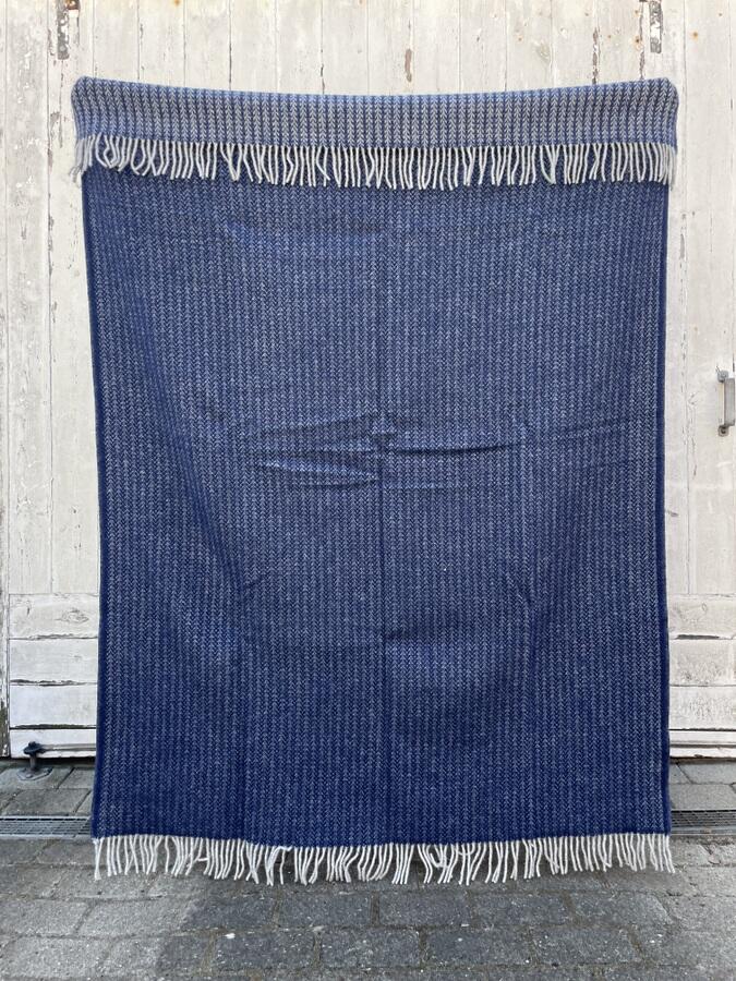 En levende og klassisk plaid med smukt vævemønster i mørkeblå og lyseblå toner. Den melerede overflade giver dybde og karakter – en plaid med ro, varme og naturlig elegance til ethvert hjem.