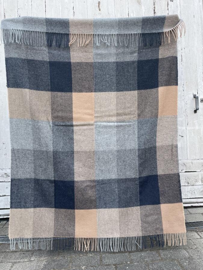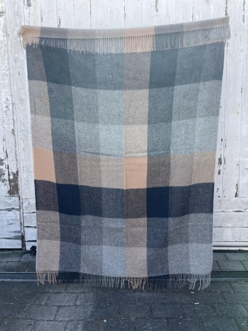 Ternet ulplaid i brune blå nuancer - 100% norsk uld