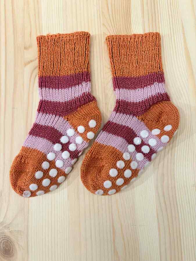 Økologiske Uldsokker med dutter/ Lyserød striber