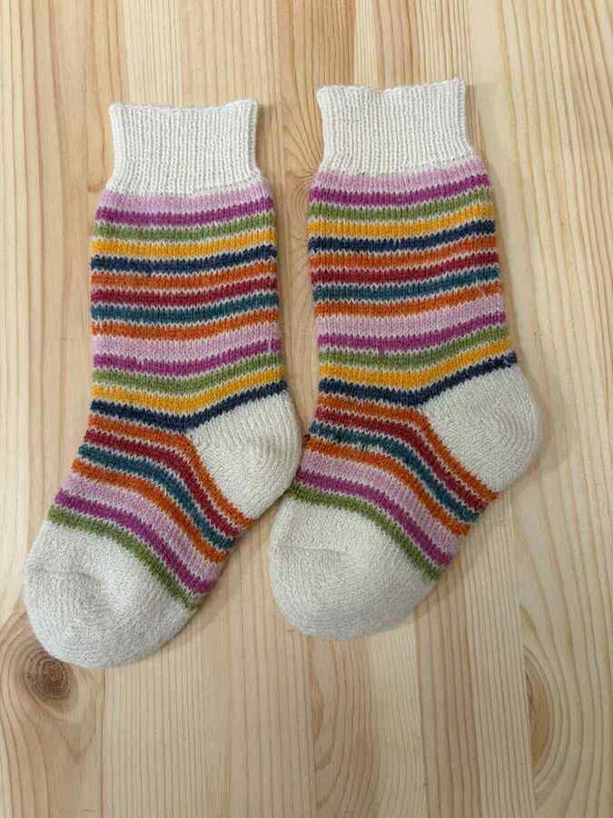 Dejlig tykke sokker, strikket i tyk kvalitet 100% økologisk uld, med en elastisk rib.