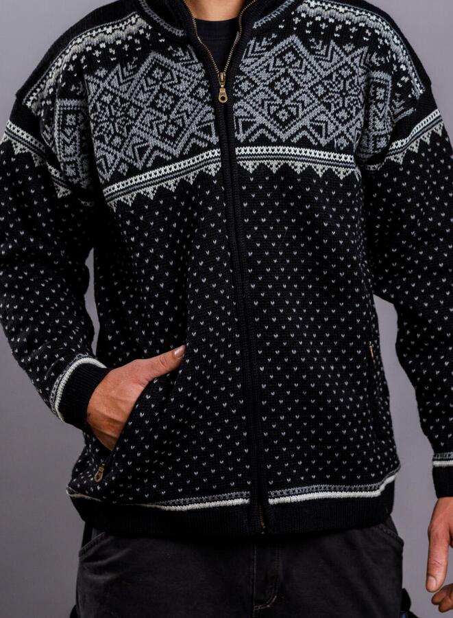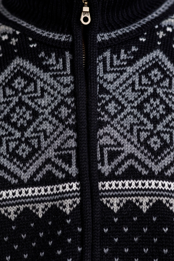 Varm og blød jakke i 100% ren kamgarn med Proline-foer, der gør den vindtæt, vandtæt, strækbar og åndbar. En norsk strikjakke i topklasse – designet som unisex-model, der passer både mænd og kvinder.